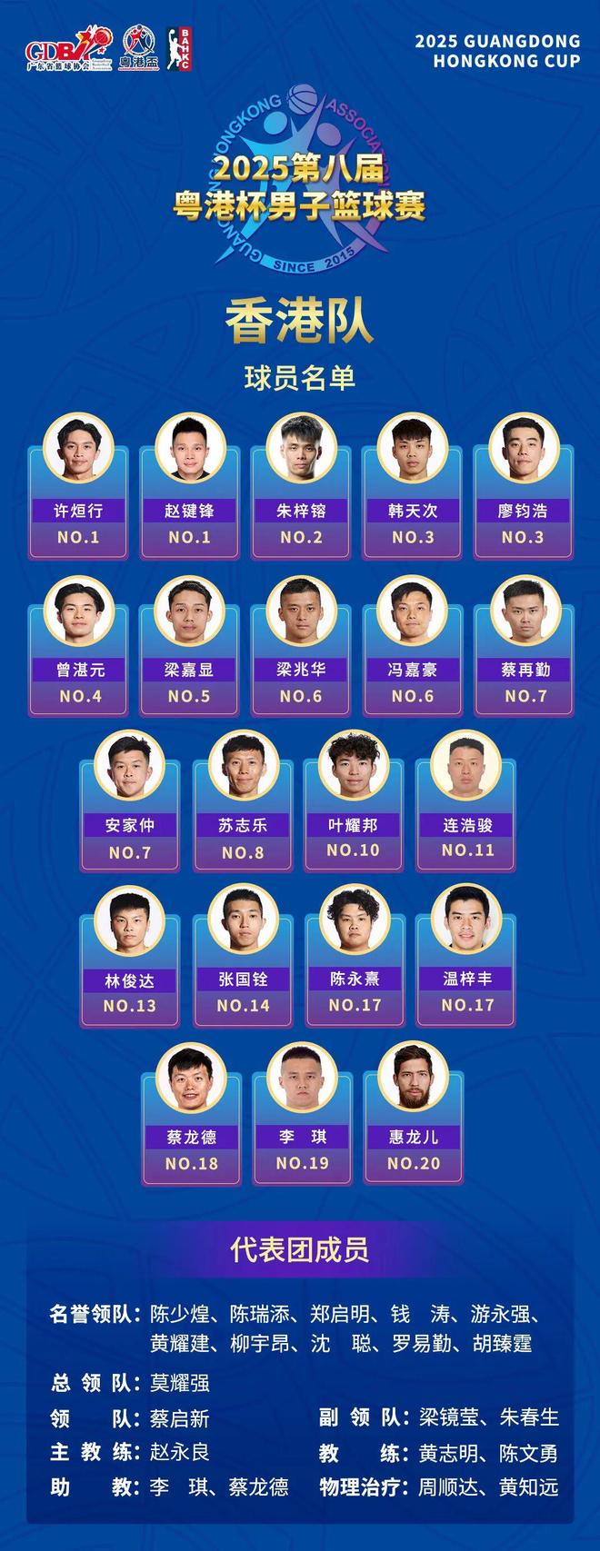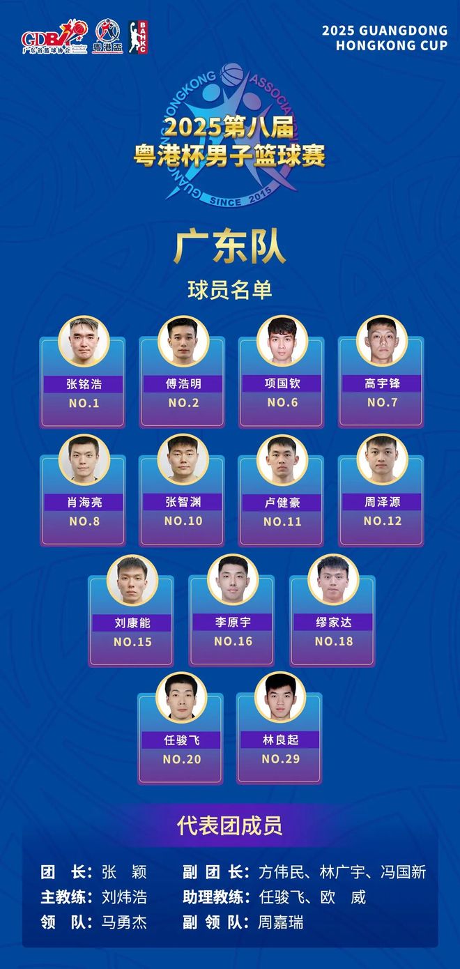 2025粤港杯男子篮球赛将于12月12日和12月14日分别在中国香港和广东阳江举行,今年来到第八个年头,直接看看名单: