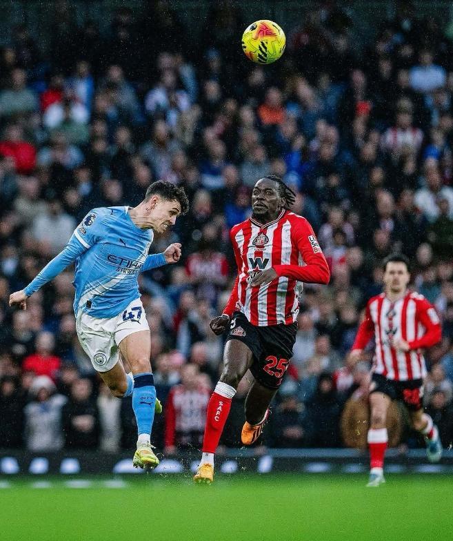 哈兰德在第59分钟获得了一次绝佳的进球机会,可惜他在门前的打门没有踢上力量,被桑德兰球员门线解围,第66分钟曼城获得反击机会,谢尔基右路插花脚传中,福登头球建功,打进了近三轮联赛的第5粒进球,把比分定格为了3-0。